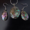 Koru Set aus geschnitztem Rinderknochen, bestehend aus einem Pendant an einer 50 cm. langen silbernen Rundkette mit dazugehörigen Ohrhängern. Glänzendes Finish.