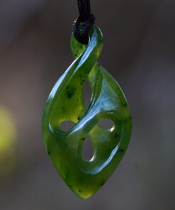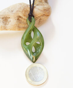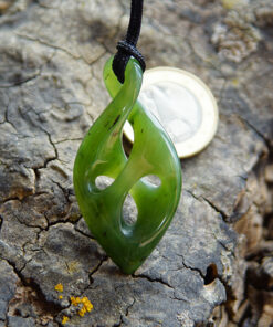 Twist Kreuz Carving aus Nephrit Jade, Hochglanz-Finish, am schwarzen Band mit Schiebeknoten.