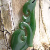 Manawa – Herz Pendant aus Nephrit Jade am Flechtband mit Schiebeknoten, Hochglanz Finish. Da Jade ein Naturprodukt ist, können Grünton und Zeichnung der Jade leicht von der Abbildung abweichen
