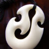 Amulett – einmalige Künstlerarbeit von Norman Clark aus Neuseeland, geschnitzt aus Rinderknochen, tragbar am traditionellen Wachsband mit Schiebeknoten.