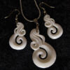 Schmuck Set mit ovalen Anhängern aus geschliffenen und polierten kleinen Paua Muscheln an einer 45 cm. langen silbernen Rundkette und dazugehörigen Ohrhängern.