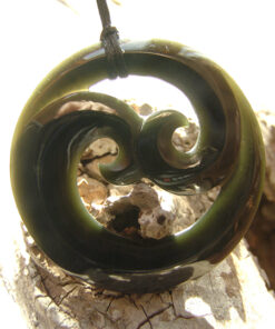 Rua Koru Klassisches Carving aus schwarzer Nephrit Jade am traditionellen Wachsband mit Schlaufe und Jadeknebel, Hochglanz-Finish. Das Pendant ist auf beiden Seiten, Vorder- und Rückseite, detailliert ausgearbeitet.