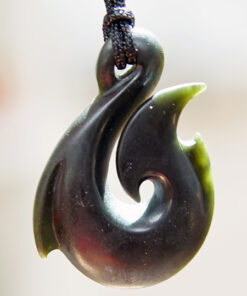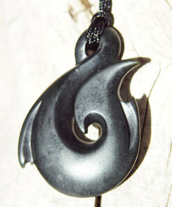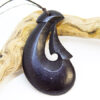 Hook Carving aus schwarzer Nephrit Jade am schwarzen Band mit Schiebeknoten, mattes Finish.