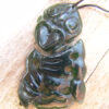 Kleines Tiki Carving aus dunkelgrüner Nephrit Jade, glänzendes Finish, am traditionellen Wachsband mit Schiebeknoten.