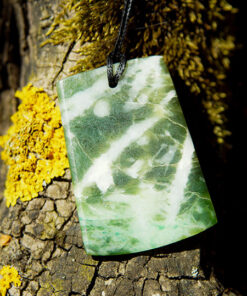 Unikat von der Südinsel Neuseelands aus der hoch geschätzten, intensiv grünen, transluzenten Kahurangi Jade (Nephrit) von der Westküste, die, wenn sie weiße, kristalline Markierungen aufweist, als Schneeflockenjade bezeichnet wird.