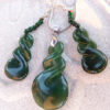 Twist Carving aus Nephrit Jade am Wachsband mit Schiebeknoten, Hochglanz-Finish.