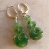 Twist Ohrhänger aus grüner Nephrit Jade. Die Jade-Carvings messen 20x12x5 mm, die Ohrhänger sind insgesamt 38 mm. lang.